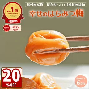 | 今年最後の最安値\20%オフ!/4980円→3984円!買回り対象!無添加『幸せの はちみつ梅 700g』紀州の南高梅 塩分ひかえめ。薄皮で柔らかい果肉が特徴 樽の味自信の 自然派梅干しです。 楽天で購入 |