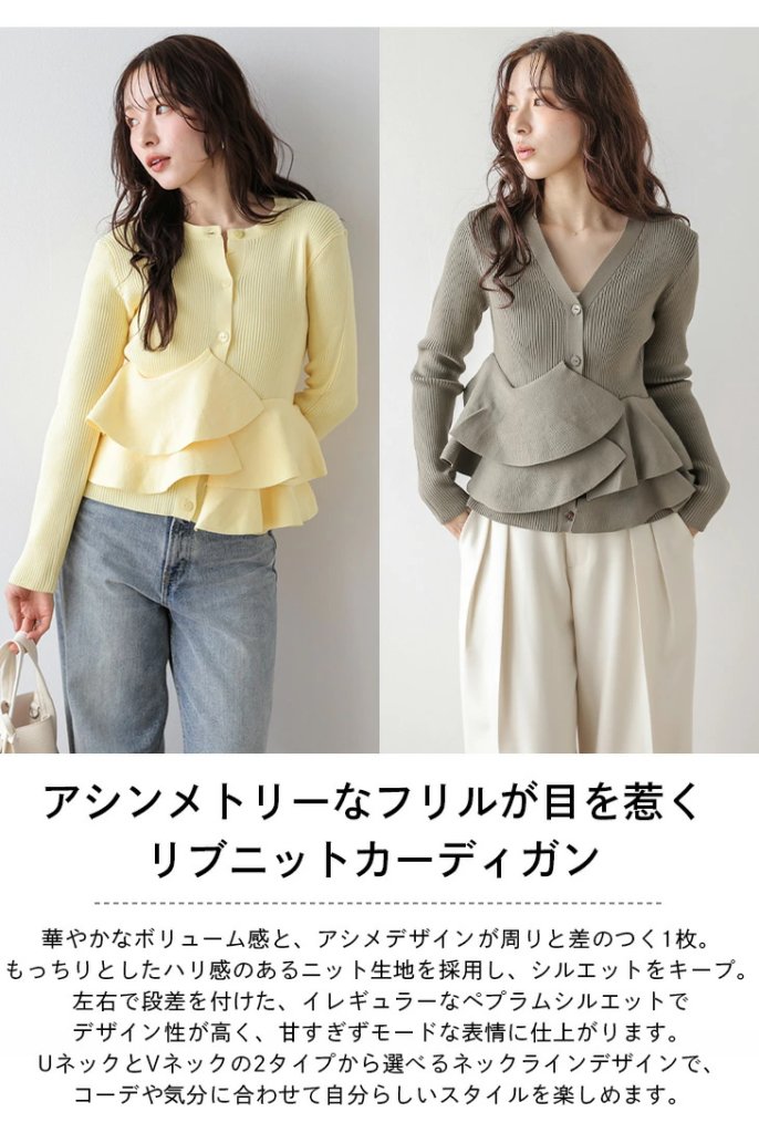 楽天アフィリエイト| 【半額クーポン対象】イレギュラーヘム ペプラム Vネック Uネック リブニット カーディガン 着痩せ 華やか 春カラー ミディアム トップス レディース 2026春夏新作 【atpss26-1916】【予約販売:4月2日入荷予定順次発送】【送料無料】宅込 楽天で購入 |